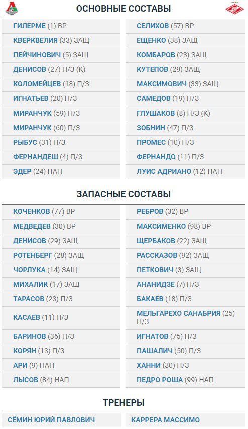 | СОСТАВЫ КОМАНД | ||||||||||||||||||||||||||||||||||||||||