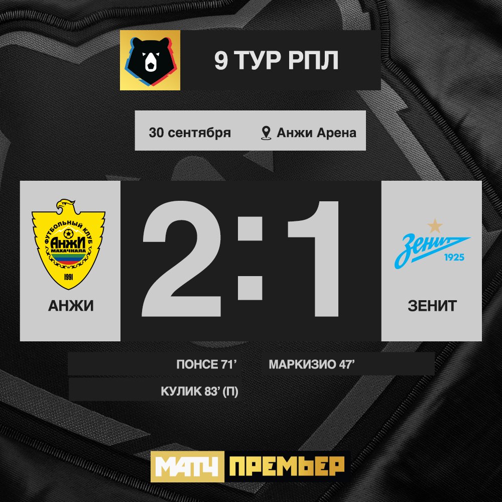 | 14:00 | Анжи | 2 : 1 | Зенит | завершен | ||||||||||||