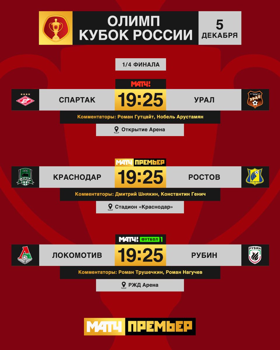 | РОССИЯ. Кубок России. 1/4 финала | ||||||||||||||||