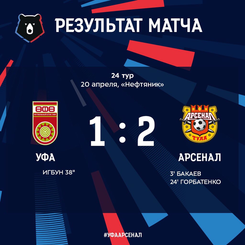 | 11:30 | Уфа | 1 : 2 | Арсенал | завершен |