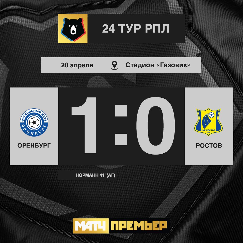 | 14:00 | Оренбург | 3 : 0 | Ростов | завершен |