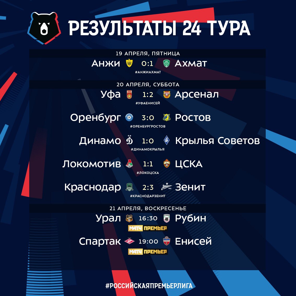 | РОССИЯ. Премьер-Лига. 24-й тур | ||||