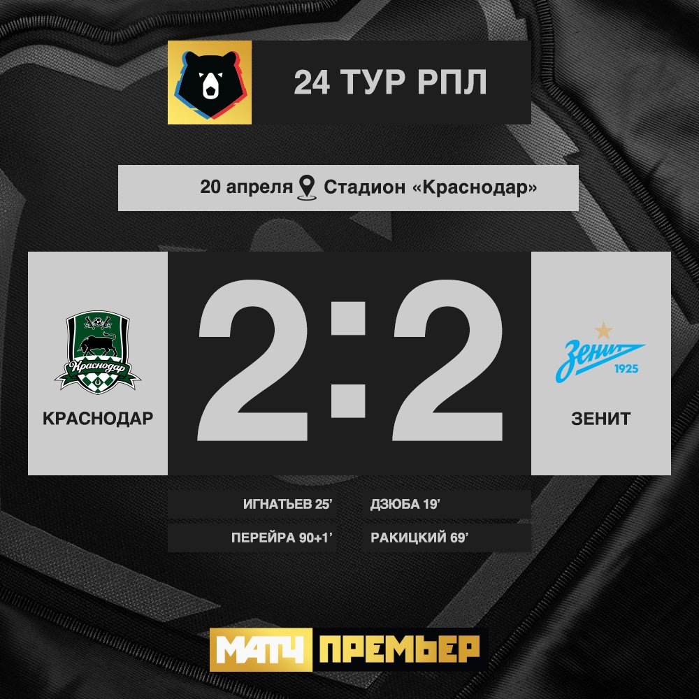 | 21:00 | Краснодар | 2 : 3 | Зеннит | завершен |