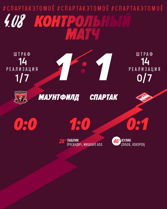 Маунтфилд - Спартак (1:1). Овертайм. Основное время: |