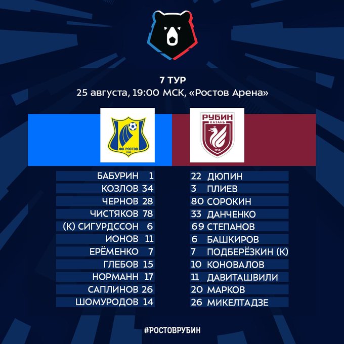 | 19:00 | Ростов | 2 : 1 | Рубин | завершен | ||||||||||||