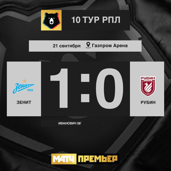 | 19:00 | Зенит | 5 : 0 | Рубин | завершен |
