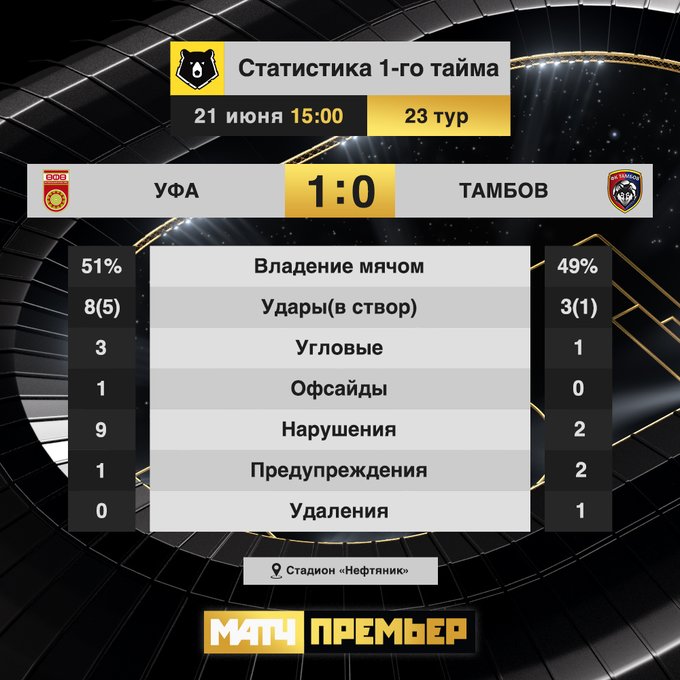 | 15:00 | Уфа | 2 : 1 | Тамбов | завершен |