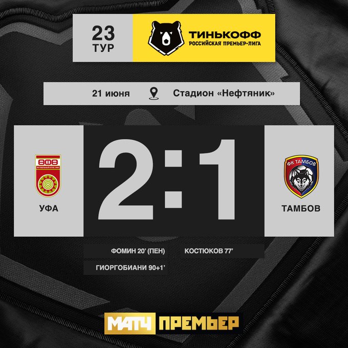 Уфа - Тамбов. 1:0. Даниил Фомин (пенальти) |